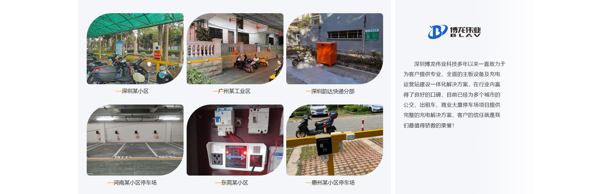 深圳市博龍偉業(yè)科技有限公司創(chuàng)辦于2002年,是一家集研發(fā)、制造、銷售于一體的科技企業(yè)。專業(yè)從事物聯(lián)網(wǎng)智能控制、共享充電、遠程智能控制、智能GPS自動報站的研究、開發(fā)、制造及銷售,憑借公司強大的技術力量和經(jīng)濟實力,不斷開發(fā)出具有國際先進技術水平的新產(chǎn)品。公司產(chǎn)品廣泛適用于公交車、觀光車、電動車充電、新能源汽車充電、智慧社區(qū)、智慧園區(qū)等。 項目案例有: 共享電瓶車充電樁,共享單車、共享按摩椅、共享充電寶、共享紙巾機、醫(yī)院共享陪護床、共享復印 機、共享雨傘、遠程控制開頭電源等。